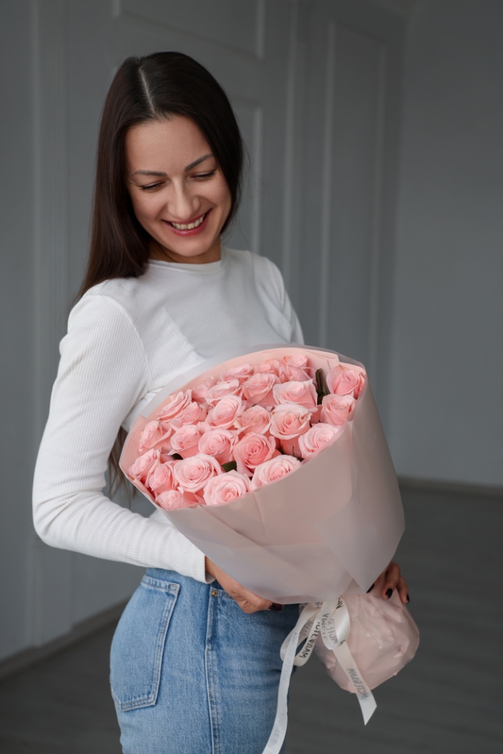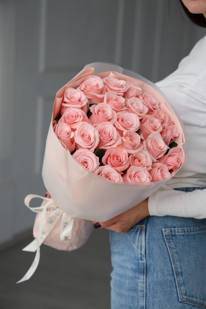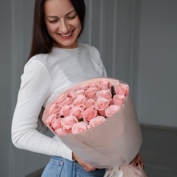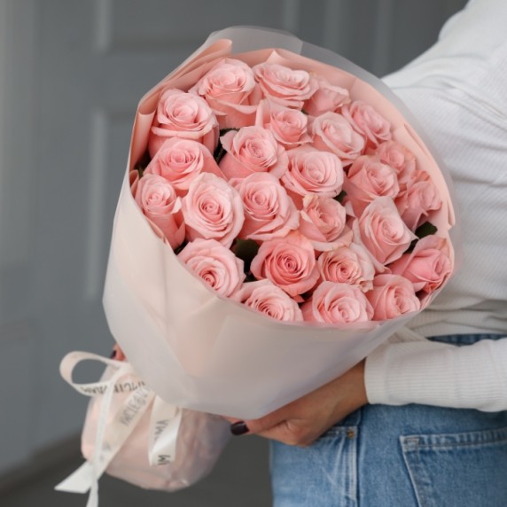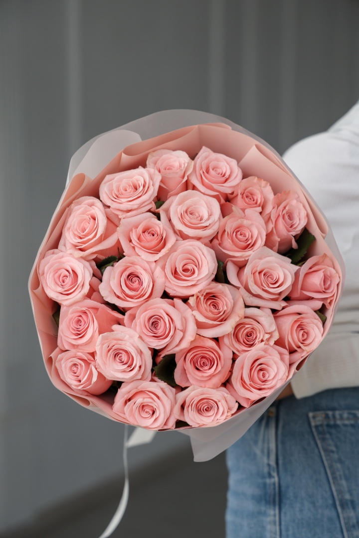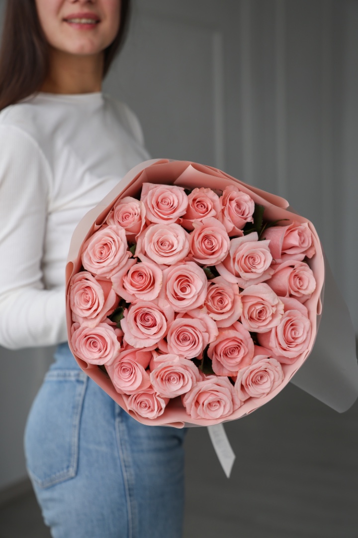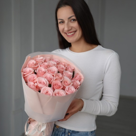 25 эквадорских крупных роз розовые