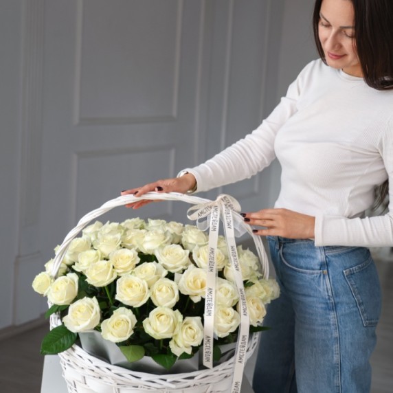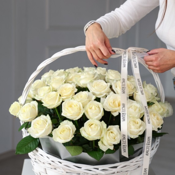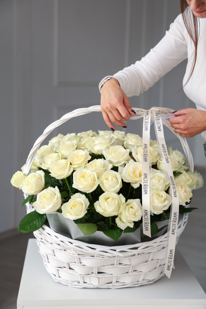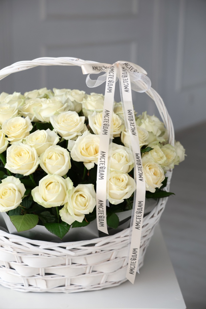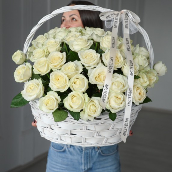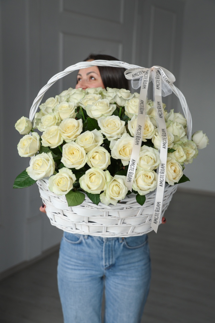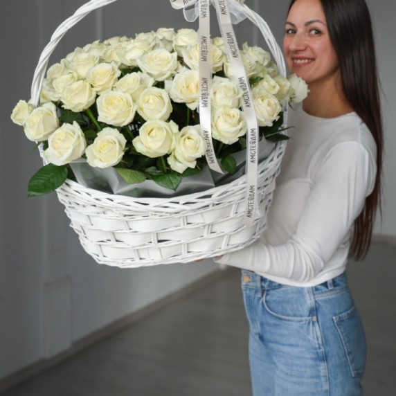 Корзина М с кремовыми розами