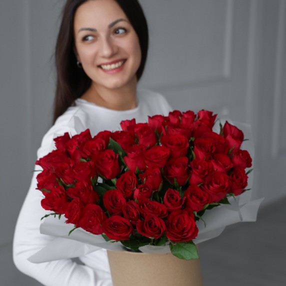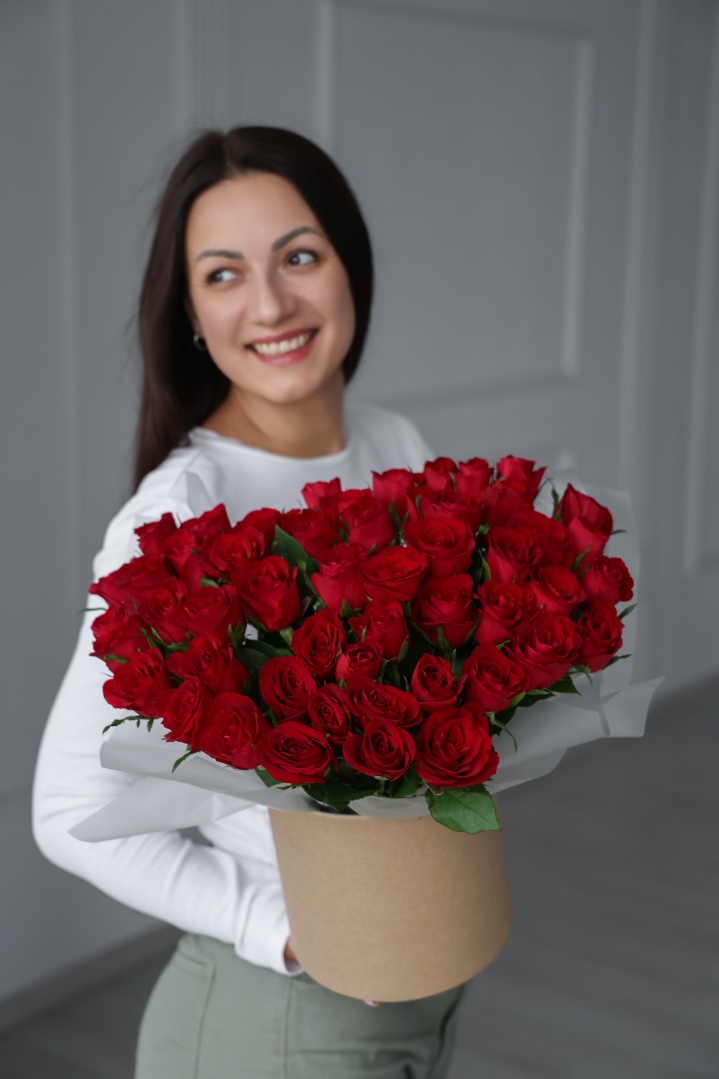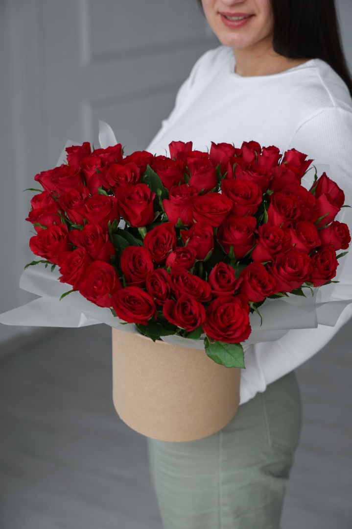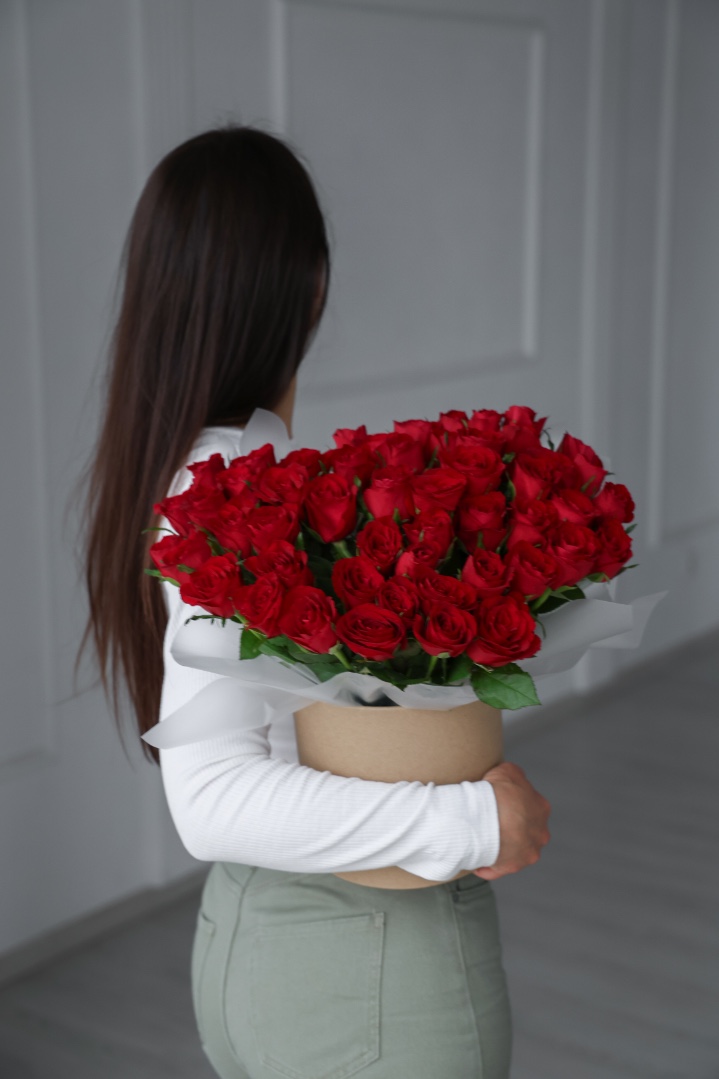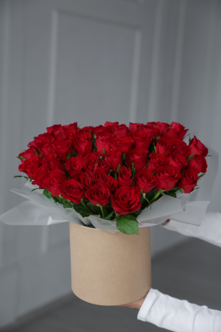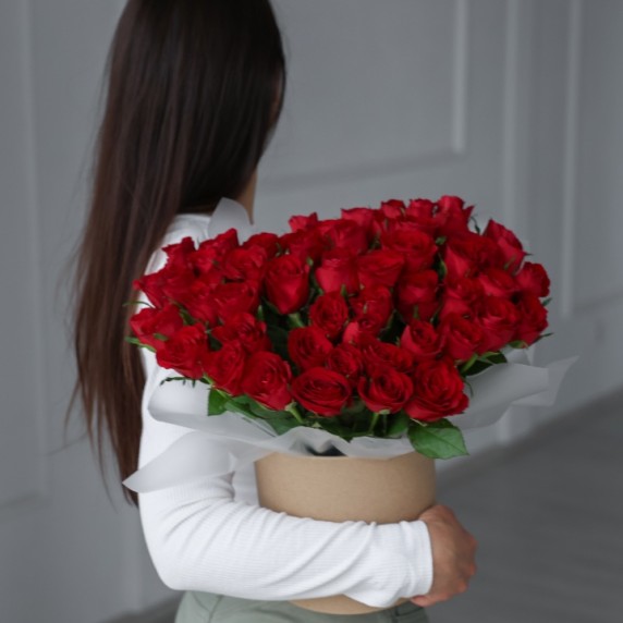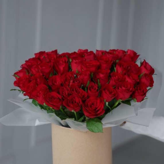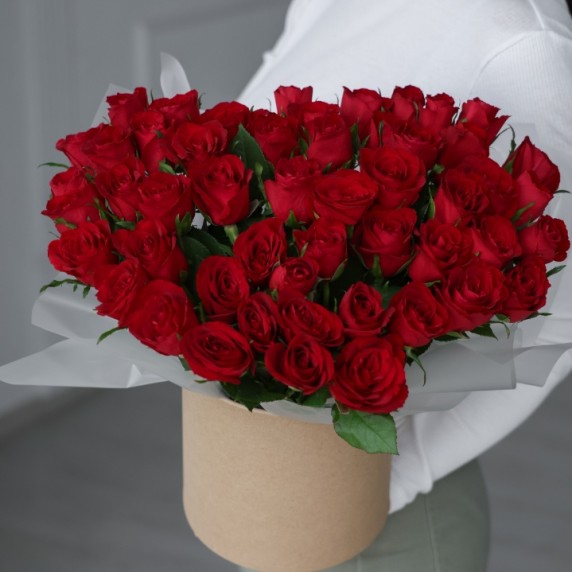 51 красная роза в шляпной коробке
