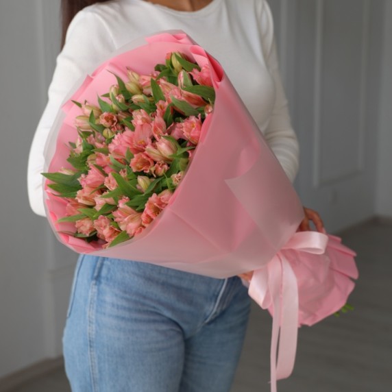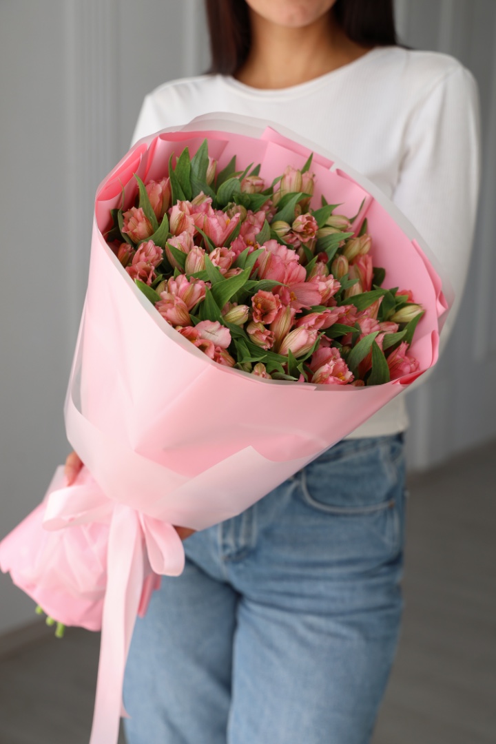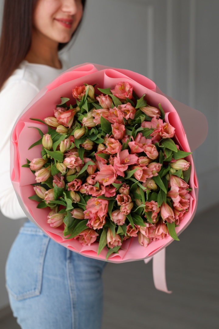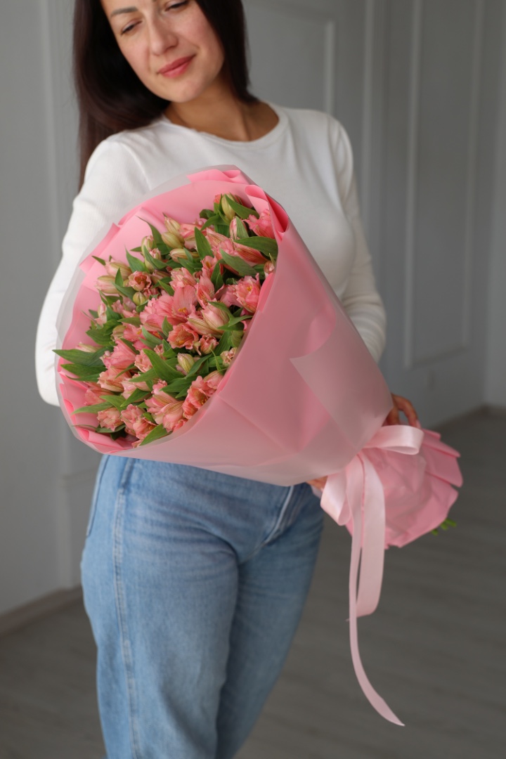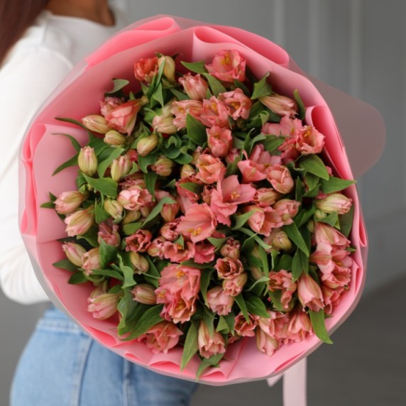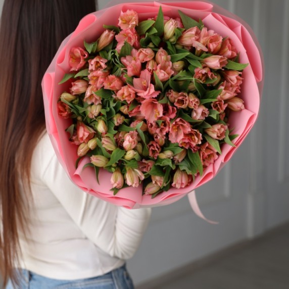 Большой букет розовых альстромерий 25 шт