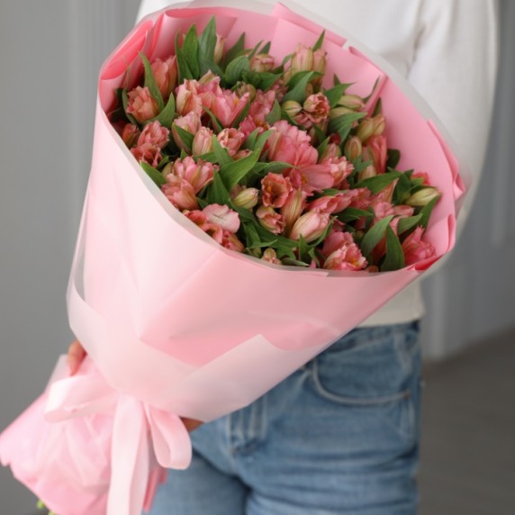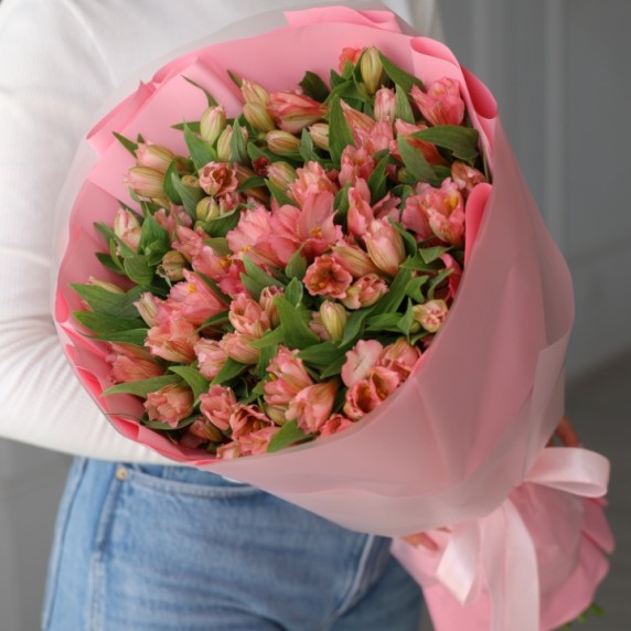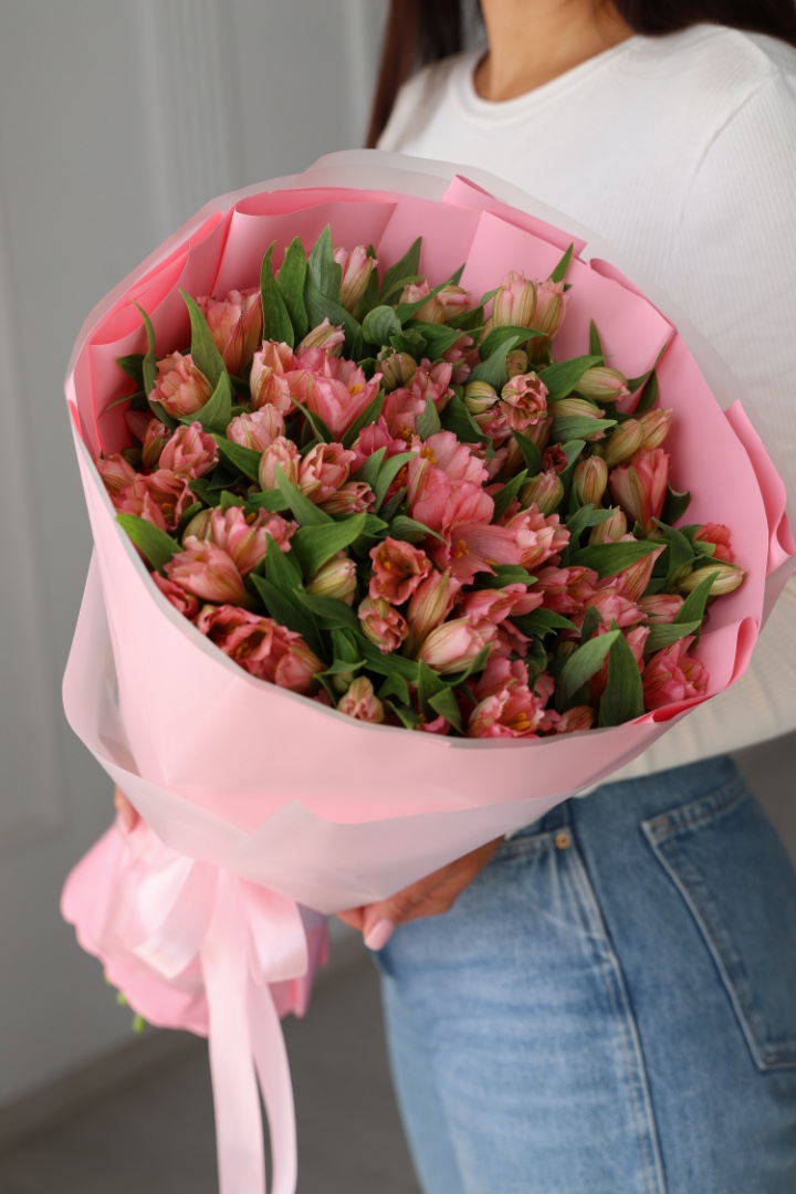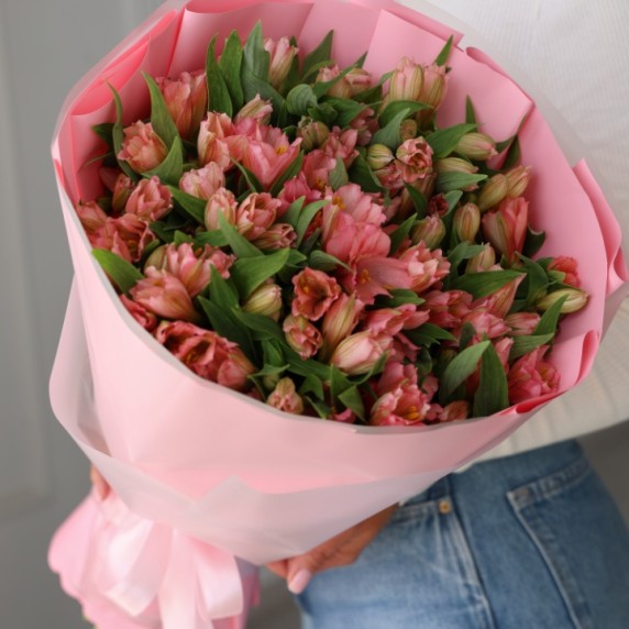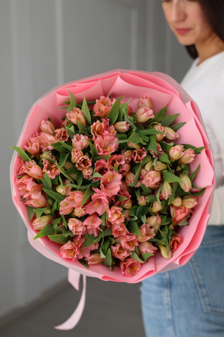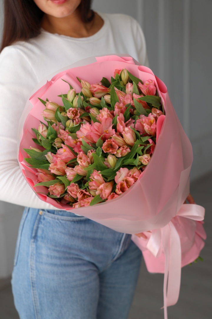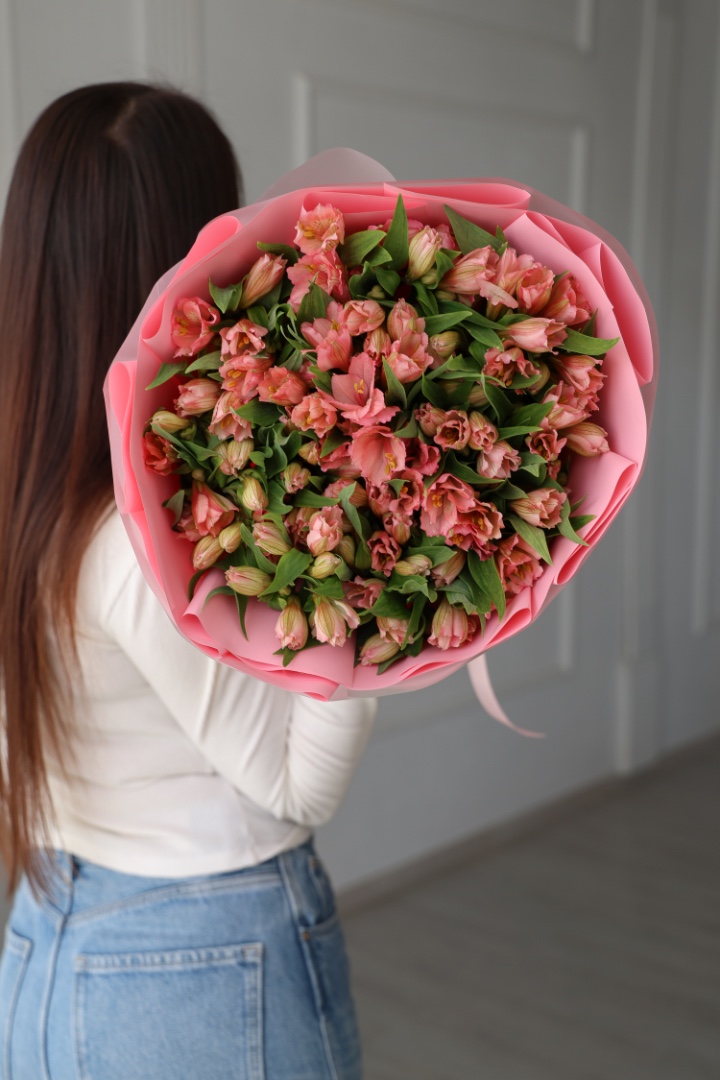 Большой букет розовых альстромерий 25 шт