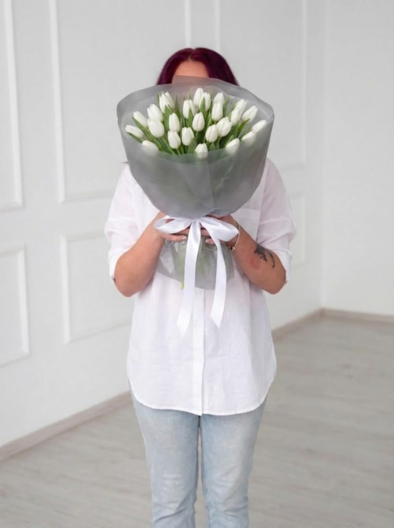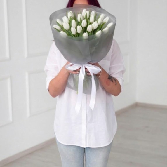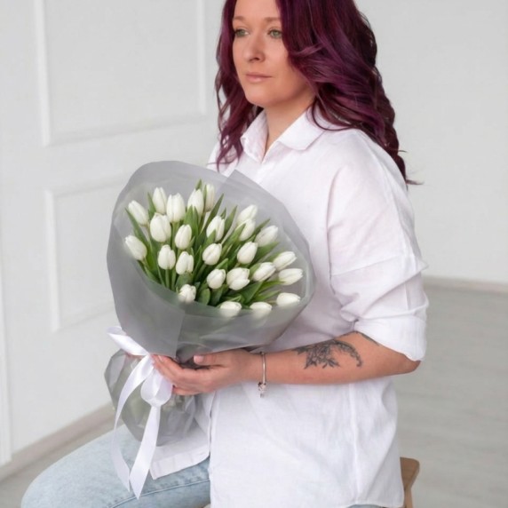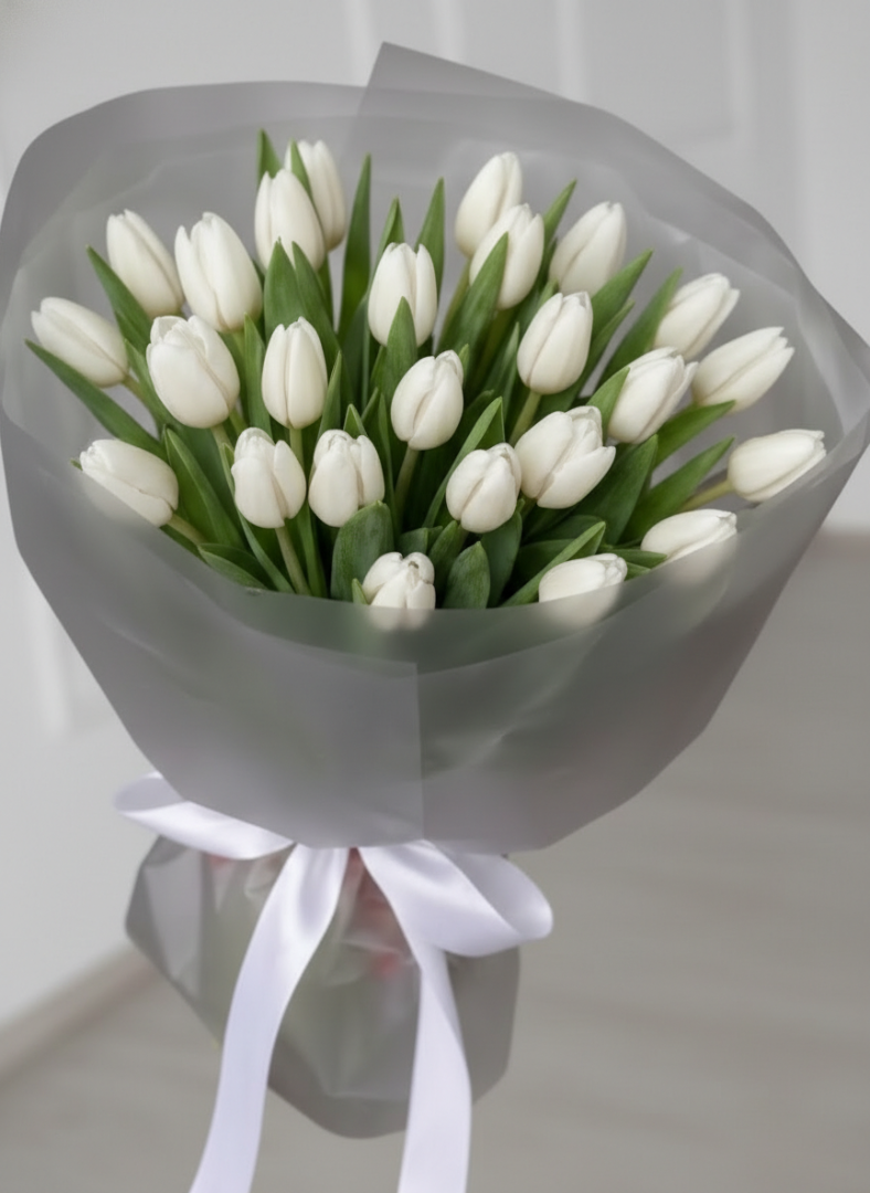 25 белых тюльпанов