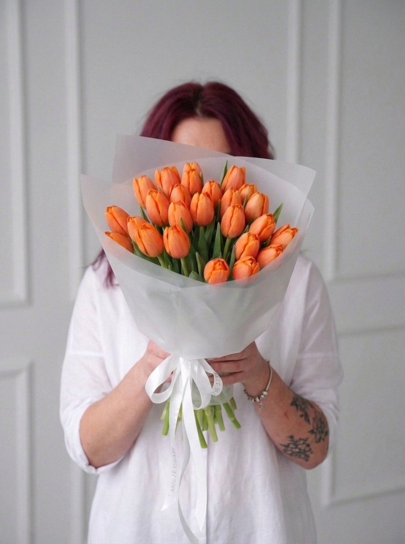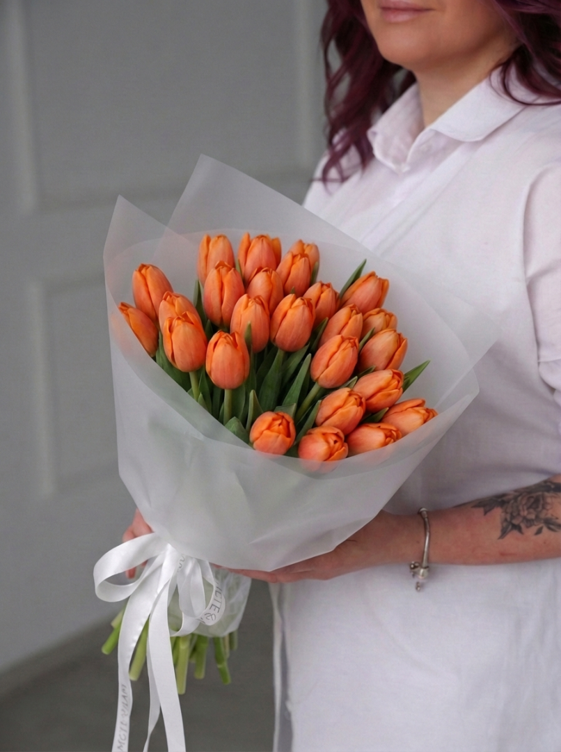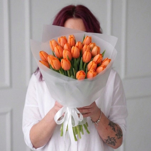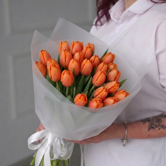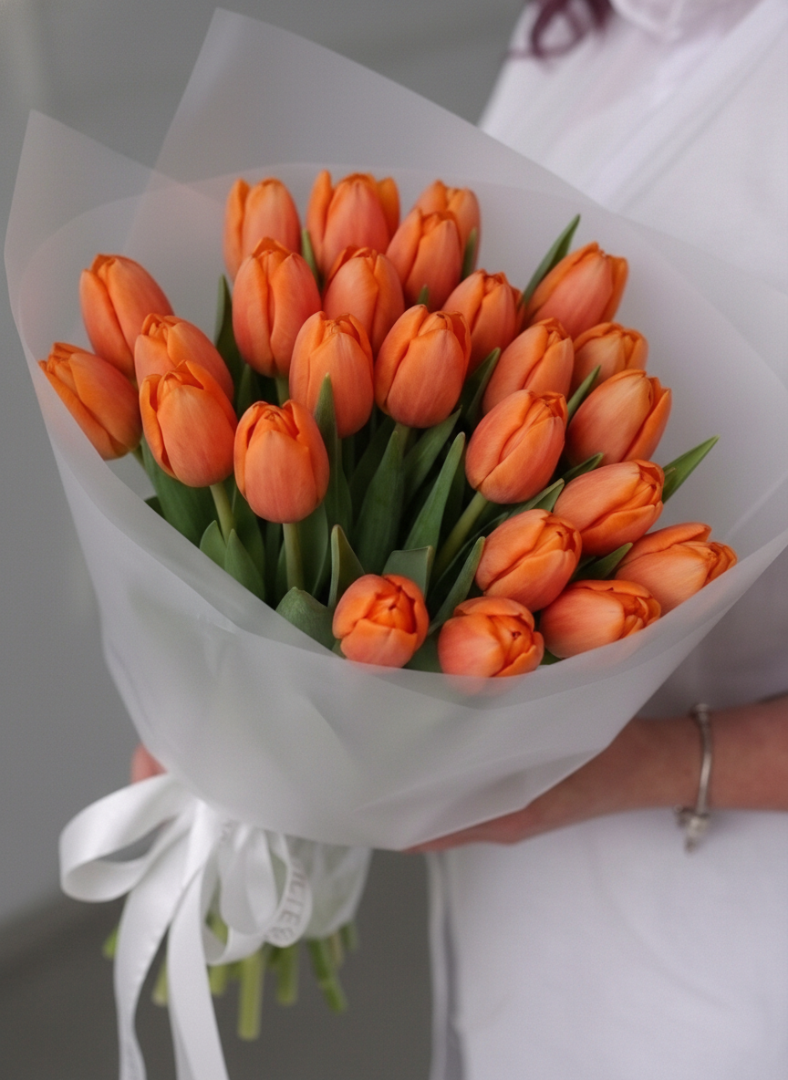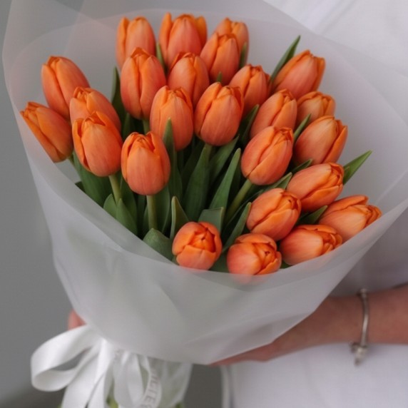 25 оранжевых тюльпанов