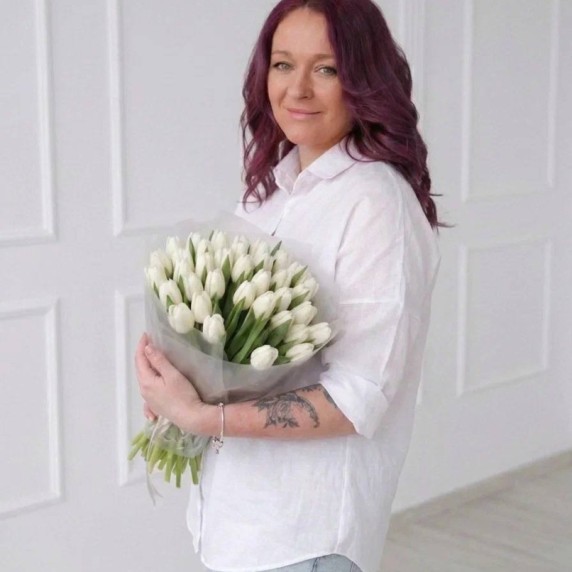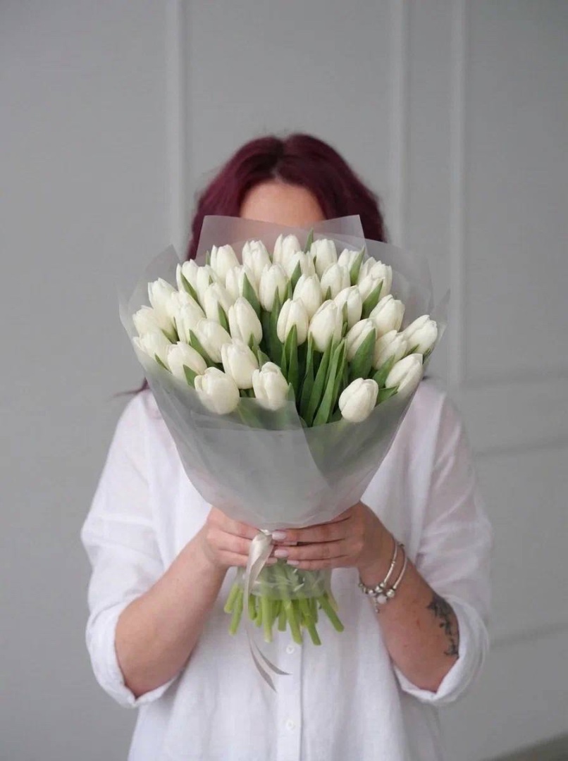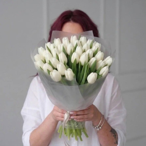 35 белых тюльпанов