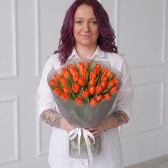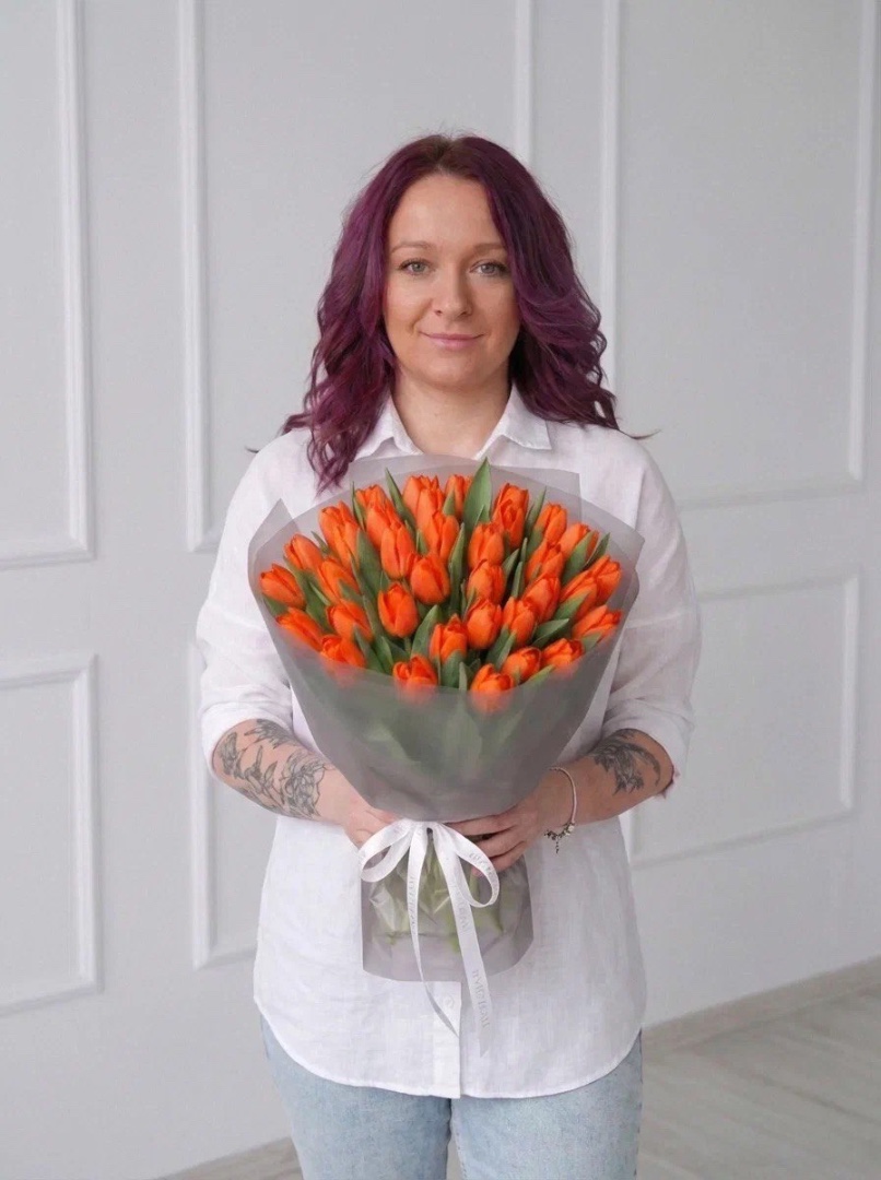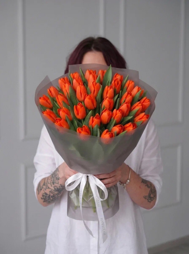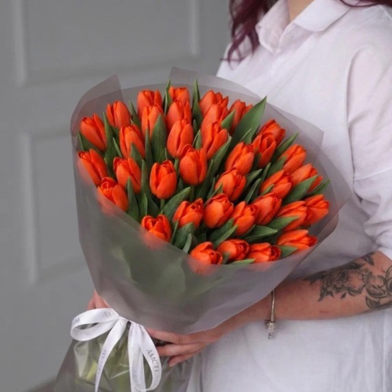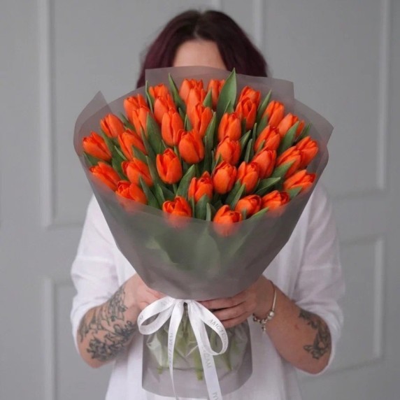 35 оранжевых тюльпанов