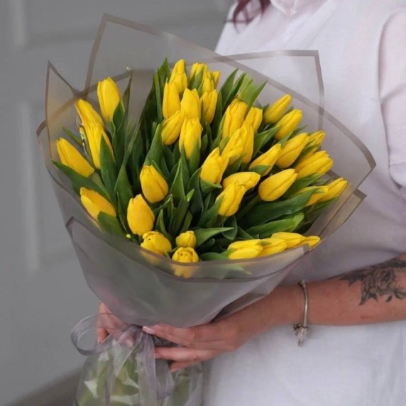 35 жёлтых тюльпанов