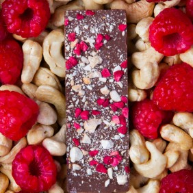 Шоколад молочный «Кешью и малина» маленькая плитка 25 гр